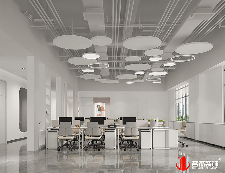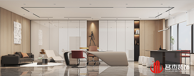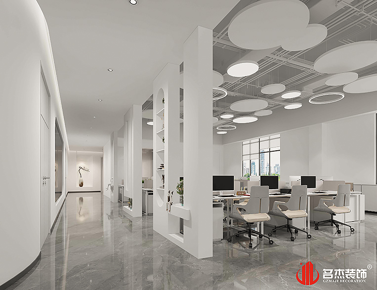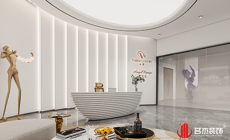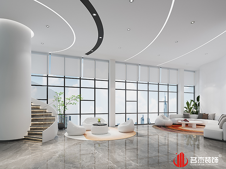 整體辦公裝修設(shè)計(jì)空間的設(shè)計(jì)格調(diào)是時(shí)尚輕奢的風(fēng)格,在前臺(tái)區(qū)域使用的是層疊的手法,加上大圓弧的吊頂,讓空間的層次感一下子就出來了。燈帶的加入也讓這個(gè)區(qū)域變得更加有時(shí)尚設(shè)計(jì)感。辦公裝修設(shè)計(jì)空間大量使用圓弧的元素,加以燈帶的組合搭配,也讓各個(gè)空間形成一種呼應(yīng)。