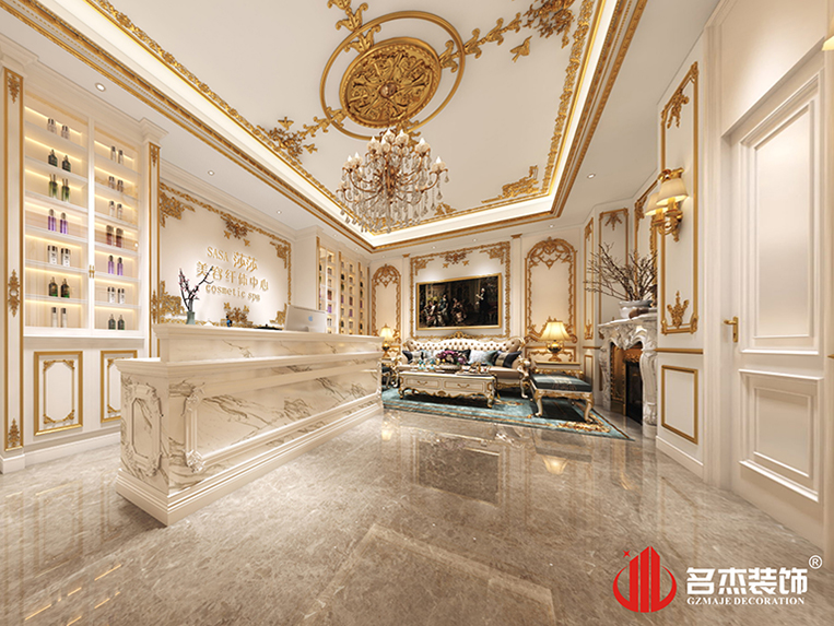 在整體的設(shè)計(jì)當(dāng)中,設(shè)計(jì)團(tuán)隊(duì)以現(xiàn)代奢華的風(fēng)格來(lái)作為這次的主打風(fēng)格,以金色作為改纖體中心的點(diǎn)綴色,而且不同造型上使用的顏色也是金色,讓空間充滿這一種奢華的感覺(jué)。在燈具的使用上也是按照奢華的路線走,水晶吊頂,壁燈,營(yíng)造出優(yōu)雅、富麗的氛圍。#美容裝修設(shè)計(jì)#