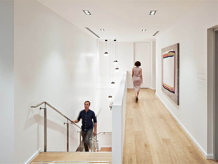 設(shè)計(jì)師通過簡(jiǎn)單的方式實(shí)現(xiàn)了優(yōu)雅:天然白櫟木溫暖的空間,墻壁上的淡灰色調(diào),天然石材,堅(jiān)固的表面材料和家具,為干凈的白色環(huán)境增添了一層復(fù)雜的深度。