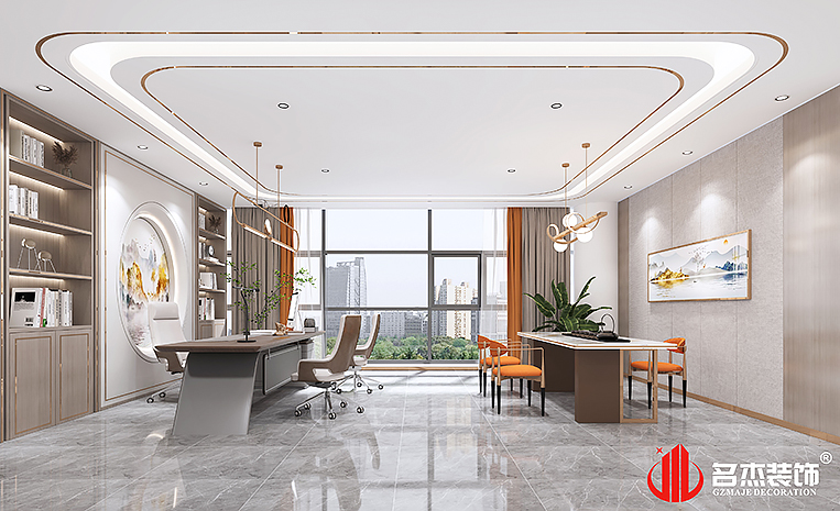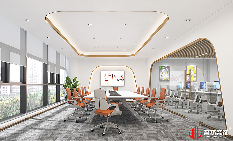 在整個的辦公室裝修設計當中,主要的空間采用土豪金和活力橙作為空間的點綴色,讓空間的設計感層層遞進。同時時尚流行的風格是非常符合化妝品這個行業(yè)的,能夠重點突出產(chǎn)品的特點以及特色,使得產(chǎn)品變得更加吸引人。