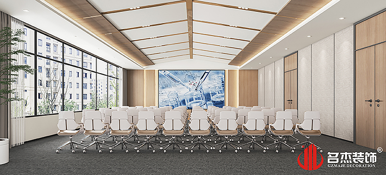 設(shè)計團(tuán)隊想要打造出一個時尚且具有企業(yè)辨識度的辦公裝修設(shè)計空間,于是在裝修設(shè)計的過程中,加入不同的設(shè)計元素,融入到時尚簡約的風(fēng)格中,變成一個特別有氛圍感的新型辦公裝修設(shè)計空間。部分區(qū)域使用土豪金元素來提升空間的含金量,讓空間有了一種輕奢的氛圍感。大會議室的吊頂使用類似中式屋頂?shù)氖址?,讓大會議室增添了不少沉穩(wěn)感。#廣州辦公室裝修#
