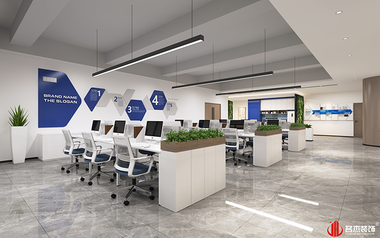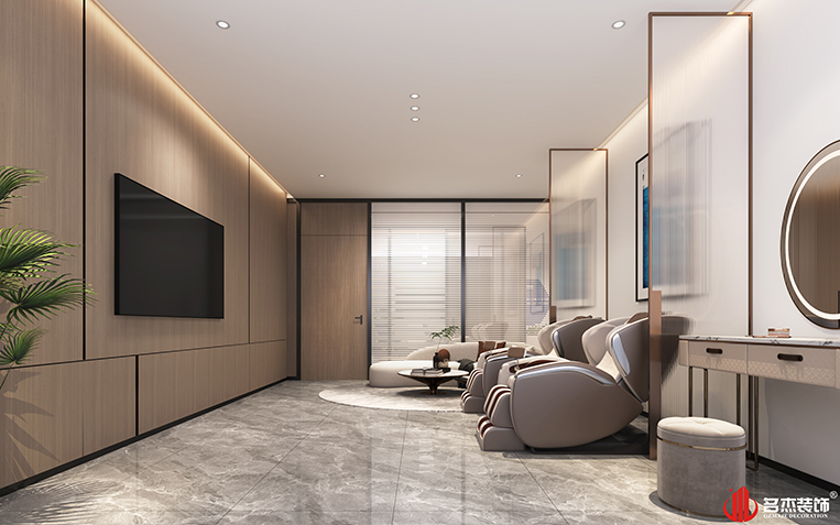 在前臺背景墻使用鋁單板作為主要裝飾,整體突出一個(gè)統(tǒng)一且流暢的造型,跟圓頂天花造型配合,搭配土豪金的點(diǎn)綴,能夠跳脫出原有時(shí)尚簡約的風(fēng)格,自成一個(gè)獨(dú)特的設(shè)計(jì)風(fēng)格。同時(shí)在整個(gè)辦公室裝修設(shè)計(jì)空間當(dāng)中,碳晶板的加入也讓空間的設(shè)計(jì)風(fēng)格更加完善,對于大面積的使用,碳晶板有著很好的整體性,出來的整體效果也更好。#廣州辦公室裝修#