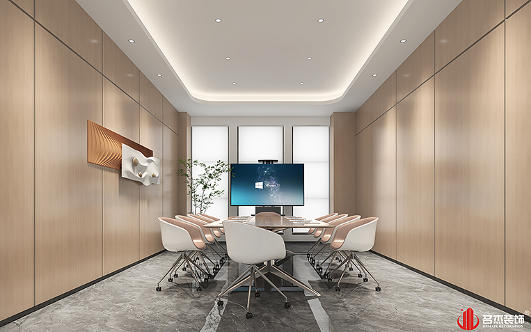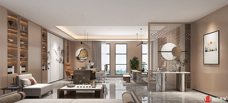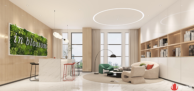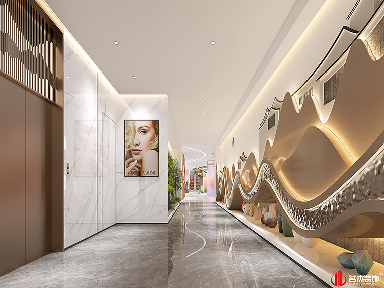 辦公裝修設(shè)計空間的主打風(fēng)格是時尚簡約風(fēng)格,但是設(shè)計團隊從化妝品行業(yè)中汲取設(shè)計靈感,同時加入一些線條的元素,堆疊出一種不同往常的時尚簡約風(fēng)格。前臺區(qū)域則是使用簡單的線條,搭配圓弧的天花吊頂,天圓地方的設(shè)計概念,簡約而不簡單。而在電梯間這個地方,利用水紋不銹鋼的材料,結(jié)合弧線元素,具象化了中國龍這個設(shè)計元素。太陽,中式房屋,中國龍,寓意著江西瑞彩化妝品公司能夠龍騰四海。#廣州辦公室裝修#
