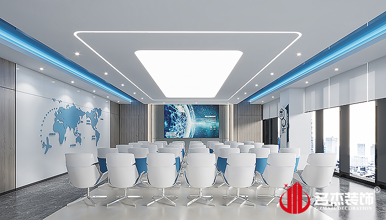 設(shè)計(jì)團(tuán)隊(duì)采用具有強(qiáng)烈科技感的配色,輔以不同造型的天花造型元素,營(yíng)造出科技感強(qiáng)烈的風(fēng)格,也回應(yīng)了寶詩(shī)龍對(duì)于未來辦公的憧憬。加上智能科技辦公家具和設(shè)備,讓空間的科技感更加突出,對(duì)于整體的辦公裝修設(shè)計(jì)空間效率提升有著很大的幫助。