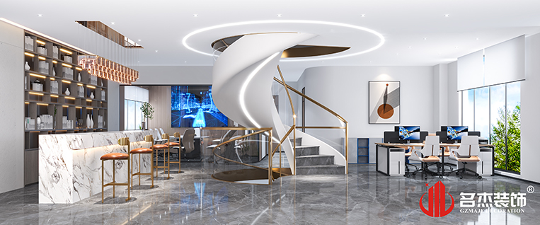 考慮到企業(yè)是以銷售為主,簡約的風(fēng)格是可以讓辦公室裝修設(shè)計空間看起來更加干練,同時沒有過多的裝飾,讓空間變得更加有效率。在展廳區(qū)域采用科技感強(qiáng)烈的元素,讓空間充滿未來感。而在休閑區(qū)則是使用簡約而不簡單的元素,加上燈帶的烘托下,舒適休閑的感覺油然而生,可以讓員工緊張的情緒得到放松。