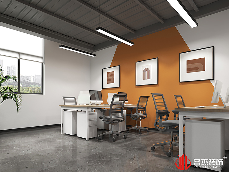 整體辦公室裝修設(shè)計(jì)風(fēng)格采用現(xiàn)代工業(yè)風(fēng)格,同時(shí)也在空間中加入logo色——橙色作為點(diǎn)綴色,讓空間也充滿(mǎn)活力,同時(shí)還能夠讓員工感受到活力滿(mǎn)滿(mǎn)的。不同的造型燈帶來(lái)的不同的感官享受,能夠讓空間變得更加有趣的同時(shí),也是能夠讓空間變得更加有設(shè)計(jì)感。