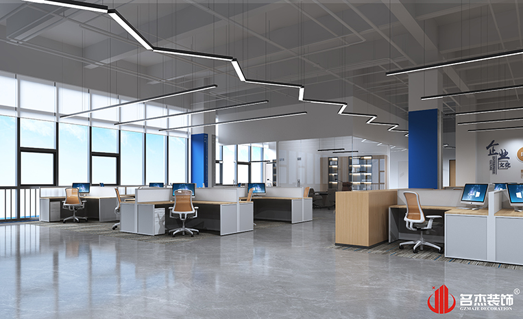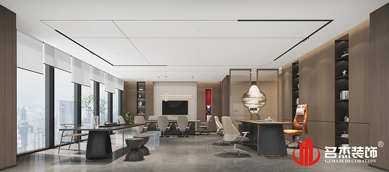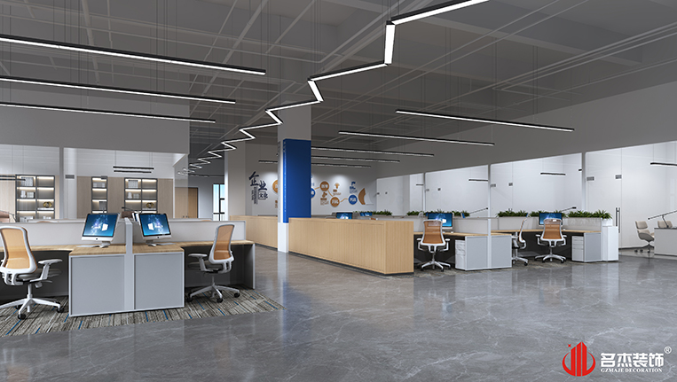 前臺區(qū)域使用弧形元素搭配藍色科技感的燈帶來打造專屬的科技感,這兩個元素搭配可以創(chuàng)造更多的可能性,再加上圓形吊頂,天花燈膜,可以讓辦公裝修設計空間的科技感更上一層樓。開放辦公區(qū)域則是選擇使用工業(yè)風來作為主打的風格,突出一個干練高效。而在經理室和總經理室采用的是簡約沉穩(wěn)的風格來打造,配合時尚的家具,搭配出不一樣的效果。