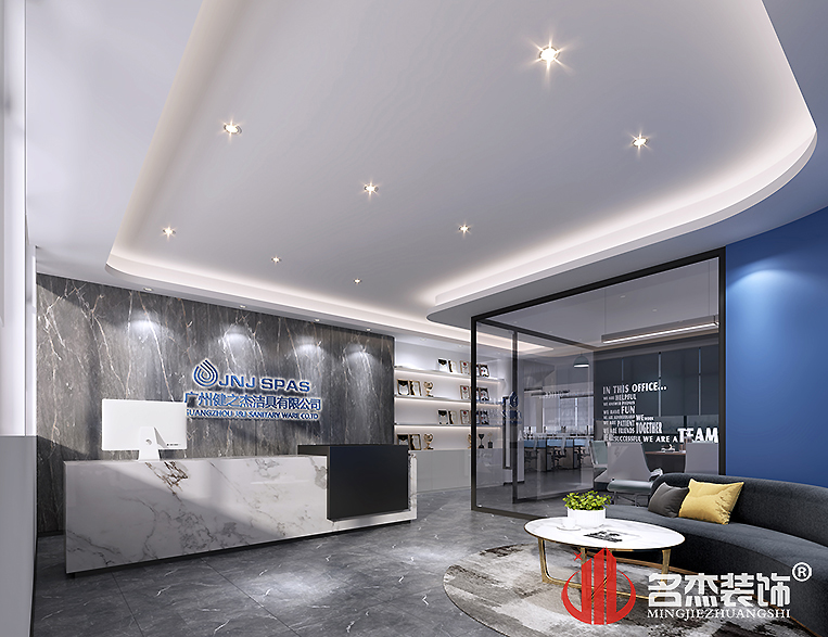 本案例是以潔具為主的企業(yè),設計師通過溝通和了解,通過將企業(yè)LOGO的顏色加入到整體的設計當中,把企業(yè)文化和品牌意識融入到整個空間當中。同時也加入了玄關的設計元素,讓整個空間顯得格外的溫馨