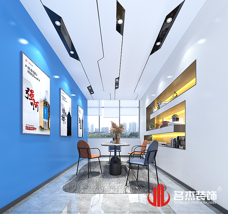 根據(jù)客戶的需求,在前臺背景墻上面使了弧形元素和企業(yè)logo色相互結(jié)合,形成了一種時尚且獨特魅力的風格。而且在多個區(qū)域中使用多種造型的燈具,讓辦公室裝修設(shè)計空間中的設(shè)計感更上一層樓。不同的區(qū)域也加入多種色調(diào)作為點綴色,也使得空間中的設(shè)計感迅速疊滿了。