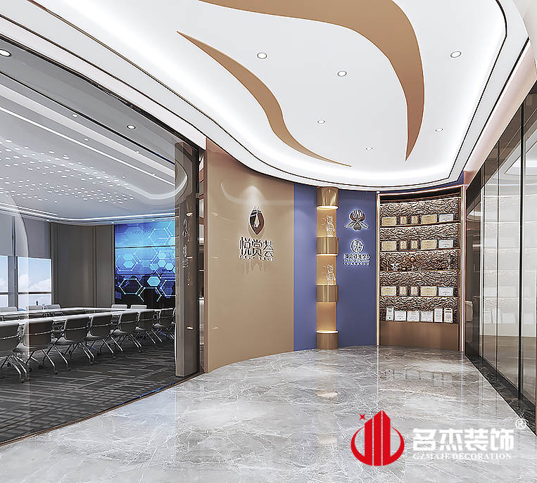 整個(gè)辦公室裝修設(shè)計(jì)在各個(gè)區(qū)域都使用設(shè)計(jì)感強(qiáng)烈的元素,從天花到玻璃隔斷,每處都能看到弧形元素的加入,合理運(yùn)用這設(shè)計(jì)元素能夠讓空間更加有層次感。熱彎玻璃的加入是可以讓整體動(dòng)線更加合理,而且還可以讓企業(yè)的元素得到更好的發(fā)揮。