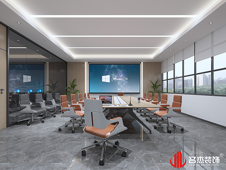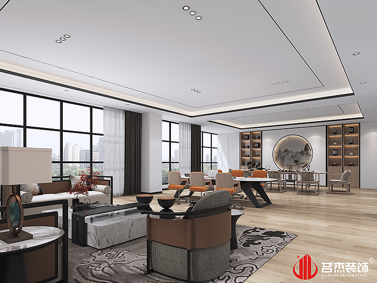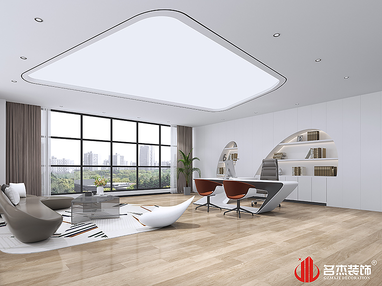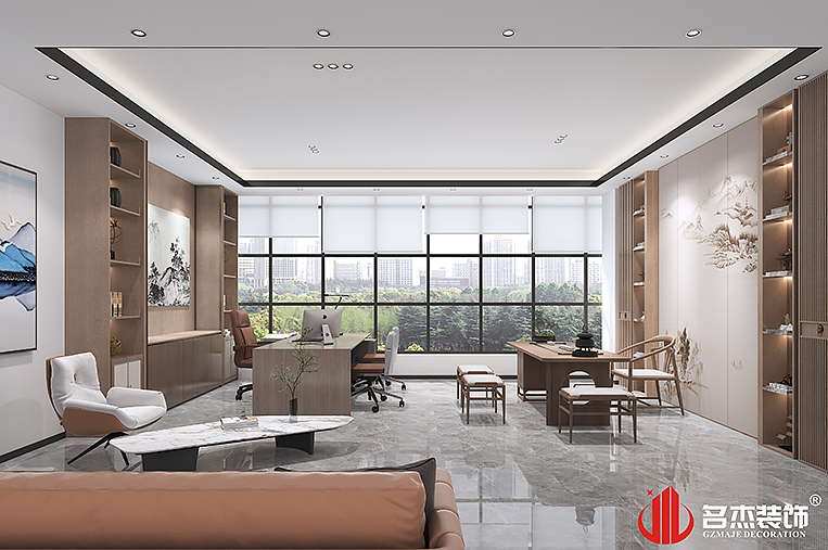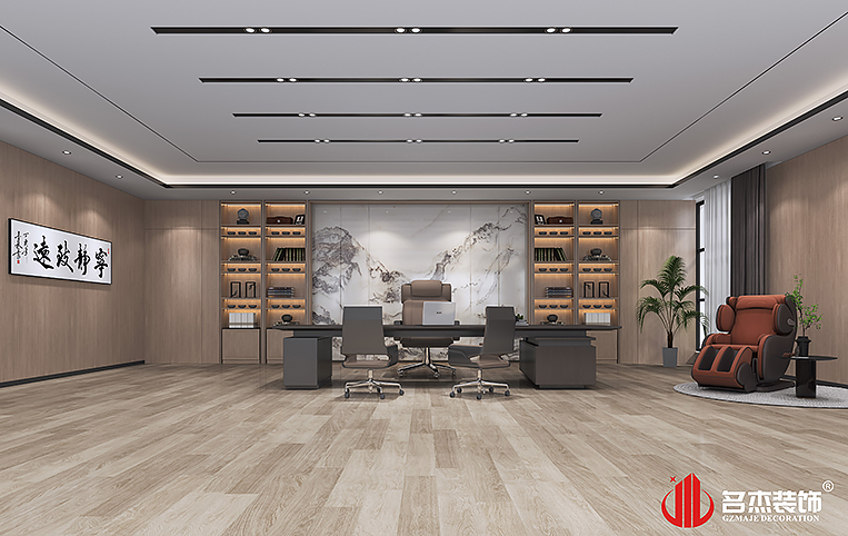 整個辦公空間裝修設(shè)計是充滿著時尚的質(zhì)感,前臺區(qū)域使用質(zhì)感強烈的鋁單板作為背景墻的材料,加以沖孔板配合燈光點綴,做出不一樣的效果,同時在柱子等地方使用硝基漆讓空間的質(zhì)感更上一個檔次,再加上大板地磚的使用,讓整個前臺的變得更加時尚大氣有質(zhì)感。經(jīng)理室空間則是使用簡約的元素,加上傳統(tǒng)的元素,突出一個精練。